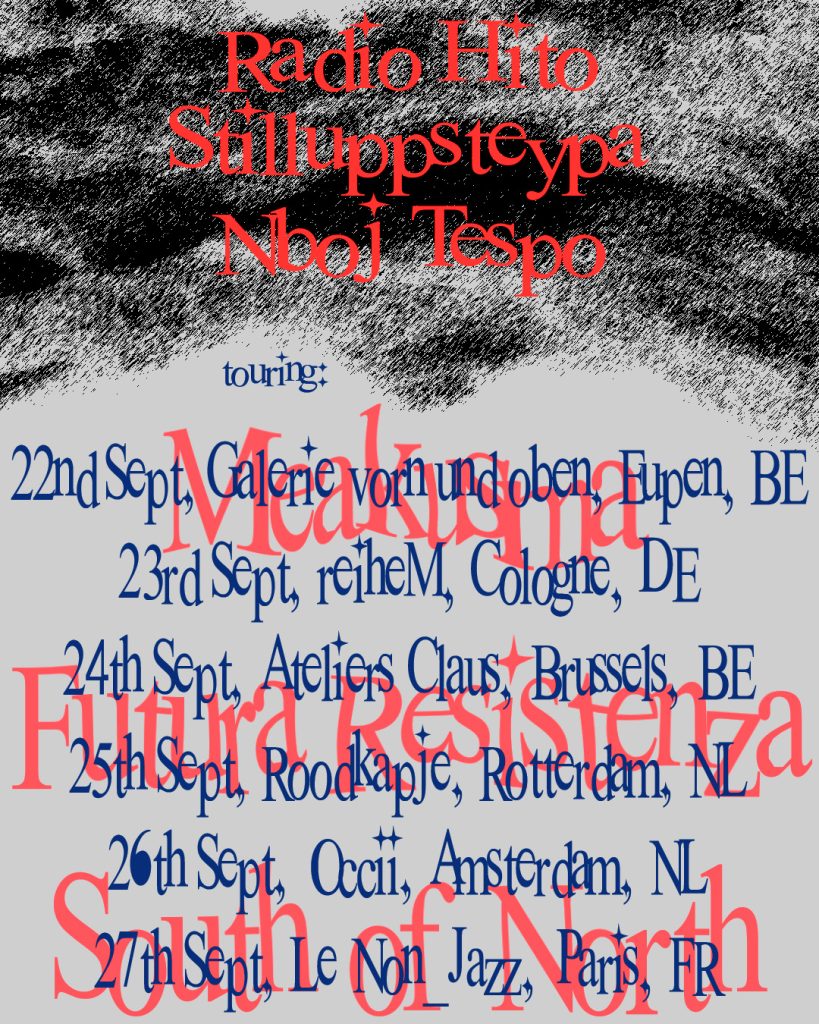 Futura Resistenza, South of North and Meakusma are thrilled to announce a September 2025 tour featuring Radio Hito, Stilluppsteypa, and Nboj Tespo at selected venues in Belgium, the Netherlands, Germany, and France.