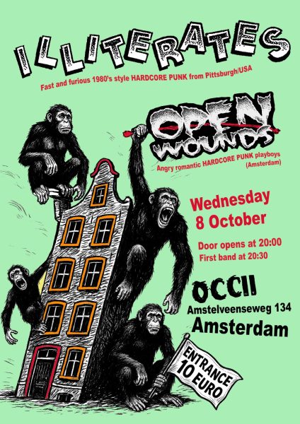 HC/PUNK AMSTERDAM presents: THE ILLITERATES (US) + OPEN WOUNDS ILLITERATES (US) Great, fast and furious 1980’s style hardcore punk from Pittsburgh (USA) Crossing the pond in October! https://illiteratespgh.bandcamp.com/album/does-not-compute-2 Flyer by @devilgirl_1997 OPEN WOUNDS Amsterdam’s finest and hottest hardcore punk with more hooks than our brains can handle it. Features current and ex members of Vitamin…