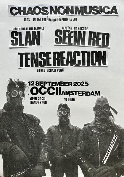 CHAOS NON MUSICA – 100% METAL-FREE HARDCORE/PUNK EVENT PRESENT: SLAN + SEEIN RED + TENSE REACTION SLAN Göteborg Ultra Mangel https://slangbg.bandcamp.com/ SEEIN RED Keistad Hardcore https://seeinred.bandcamp.com/ TENSE REACTION Utreg SchadePunx https://tensereaction.bandcamp.com/track/rationeel-uitgeluld