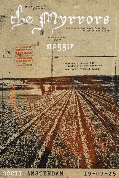 A night of “Sonoran trance music” w/ THE MYRRORS (US) + MAGGIE The Myrrors may have ostensibly emerged out of the early years of this millenniums so-called “psychedelic rock” revival with their cult album Burning Circles In the Sky (2007), but to write them off as simply another band stuck miming the past through daisy-chained…