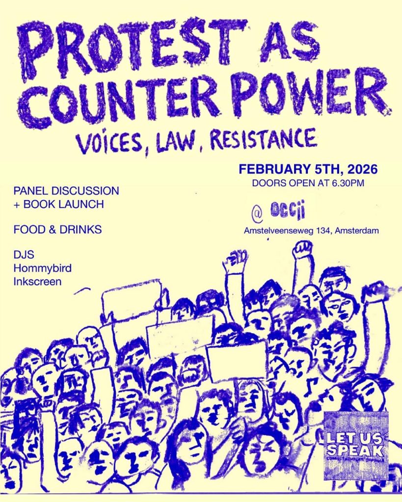 Let Us Speak was founded on the principle that, in order to lower the barriers to protesting, individuals should be equipped with the legal knowledge and community support needed to exercise their rights, particularly the right to protest. After noticing how the lack of clarity and reliable information prevented people from feeling empowered, we began organising workshops and legal trainings to create a space where people could connect, share their experiences, and develop the tools needed to protest safely and effectively. This work eventually culminated in the self-publication of our protest handbook, a concise resource that summarised essential legal rules and scenarios people could easily refer to. To make the handbook more accessible and more widely used, this event will feature the launch of our Dutch translation.